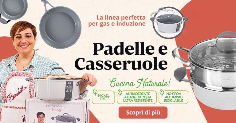 Benvenuti nel nostro shop online! Qui potrete acquistare tutti i prodotti ideati e sviluppati per voi: una linea completa di padelle e casseruole, la mia pentola fornetto, la teglia per torta furba, la friggitrice ad aria e tantissimi accessori utili in cucina per preparare ogni giorno ricette gustose e sempre diverse. Leggi di più